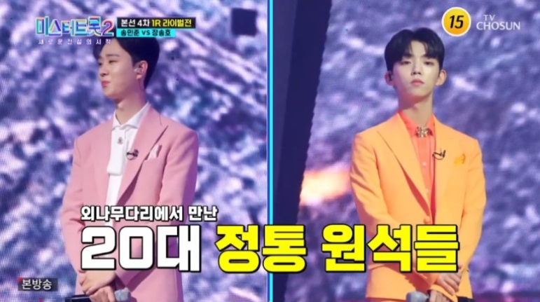 다음은 대학부 동기 송민준과 장송호의 대학부 대결입니다. 송민준이 나훈아의 '물레방아 도는데'를 부르며 많은 시청자들에게 고향을 떠올리게 하며 향수에 젖게 했습니다. 촉촉한 감성을 잘 자극하며 1170점을 얻었습니다.