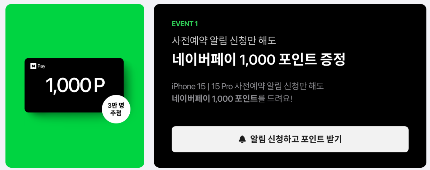 KT는 네이버페이 알림 등록 시 네이퍼페이 3천원을 1만명 추첨을 통해 제공합니다. 추가로 사용하던 중고폰을 합리적인 가격에 보상해줍니다. 또 아이폰15 전용 애플 정품 케이스 및 충전기와 매니아 인증 및 찜을 통해 Apple MagSafe 백터리팩 및 CASETiFY 기프트 카드를 증정합니다.