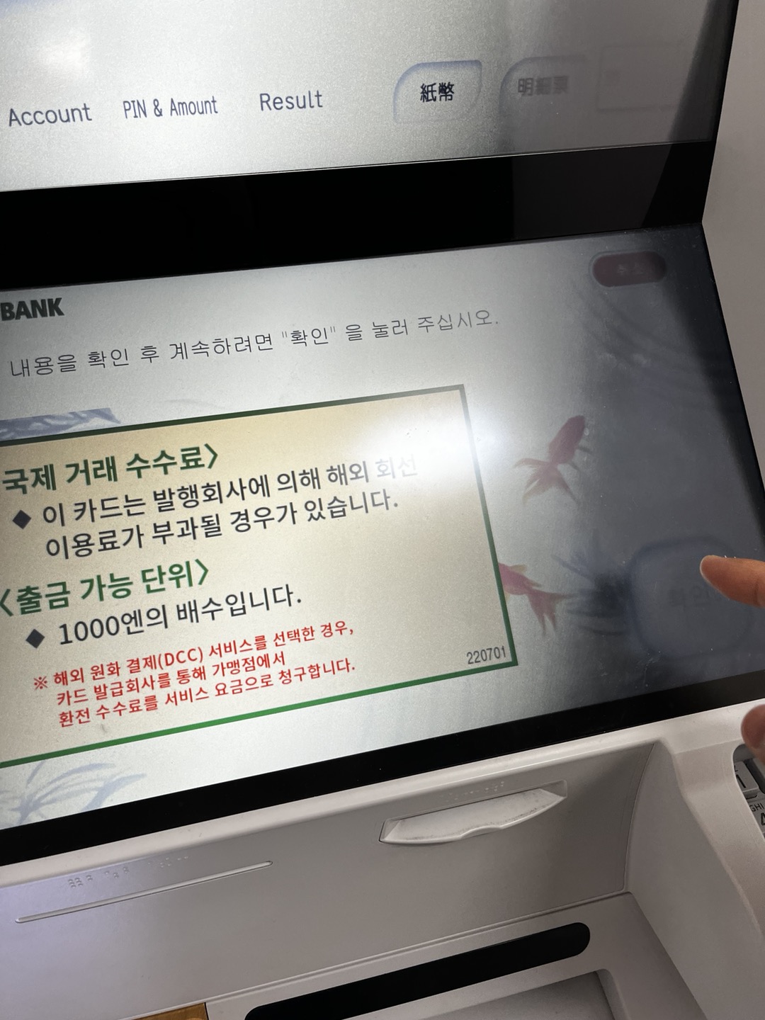 8. 출금된 엔화와 체크카드를 챙깁니다.
