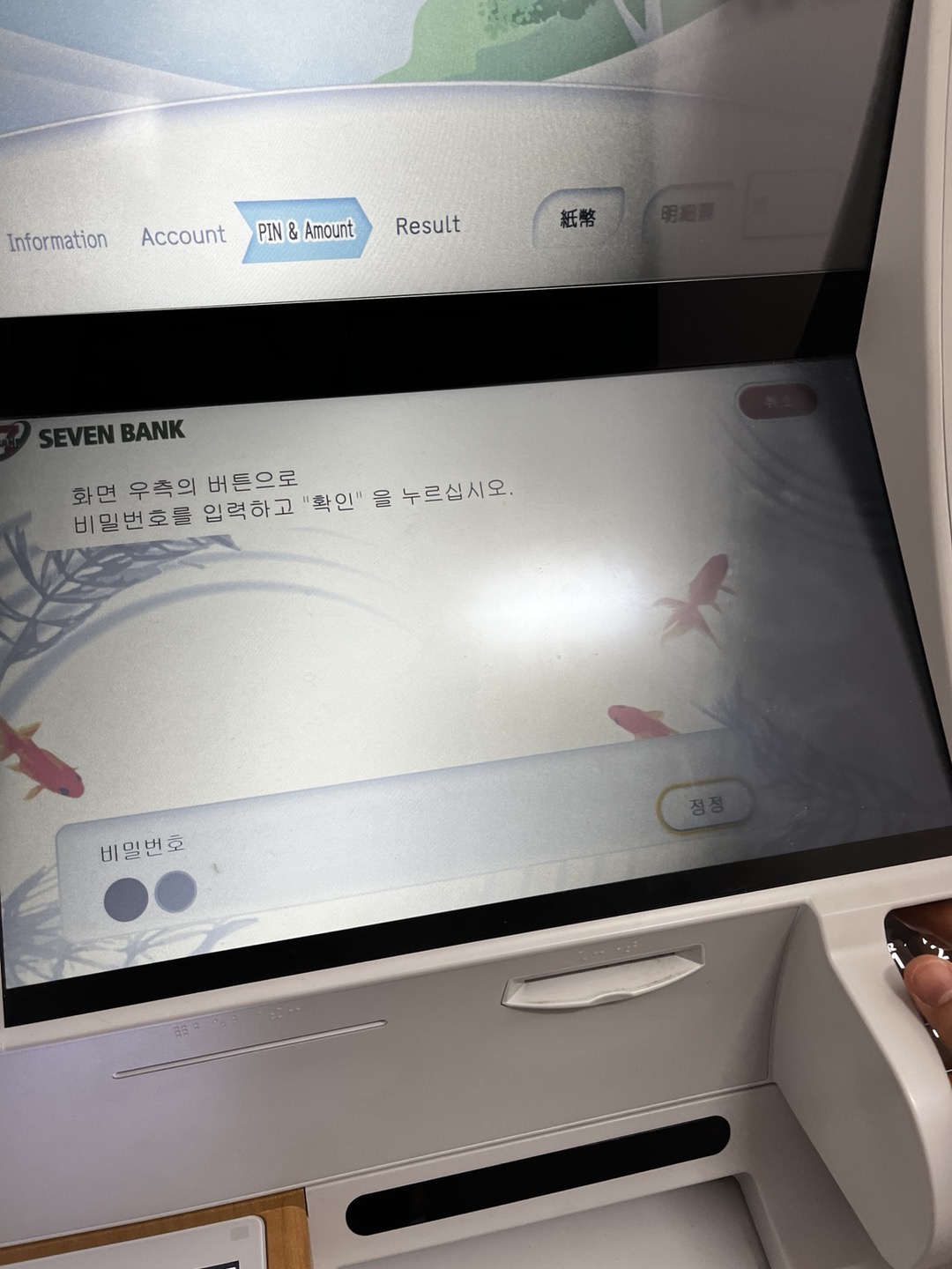 2. 세븐일레븐 편의점 한 쪽에 구비되어 있는 ATM을 찾아 출금을 시작합니다.
