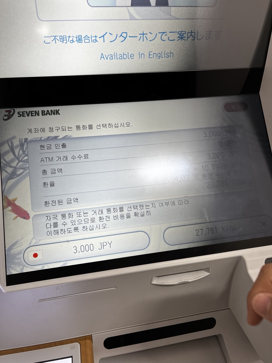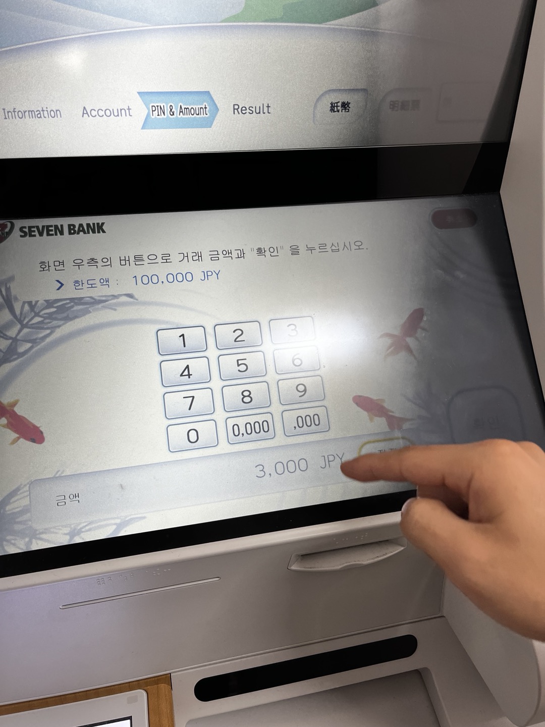 8. 출금된 엔화와 체크카드를 챙깁니다.