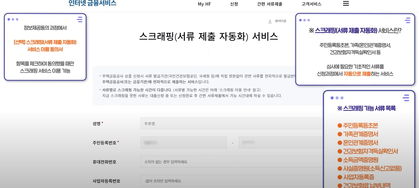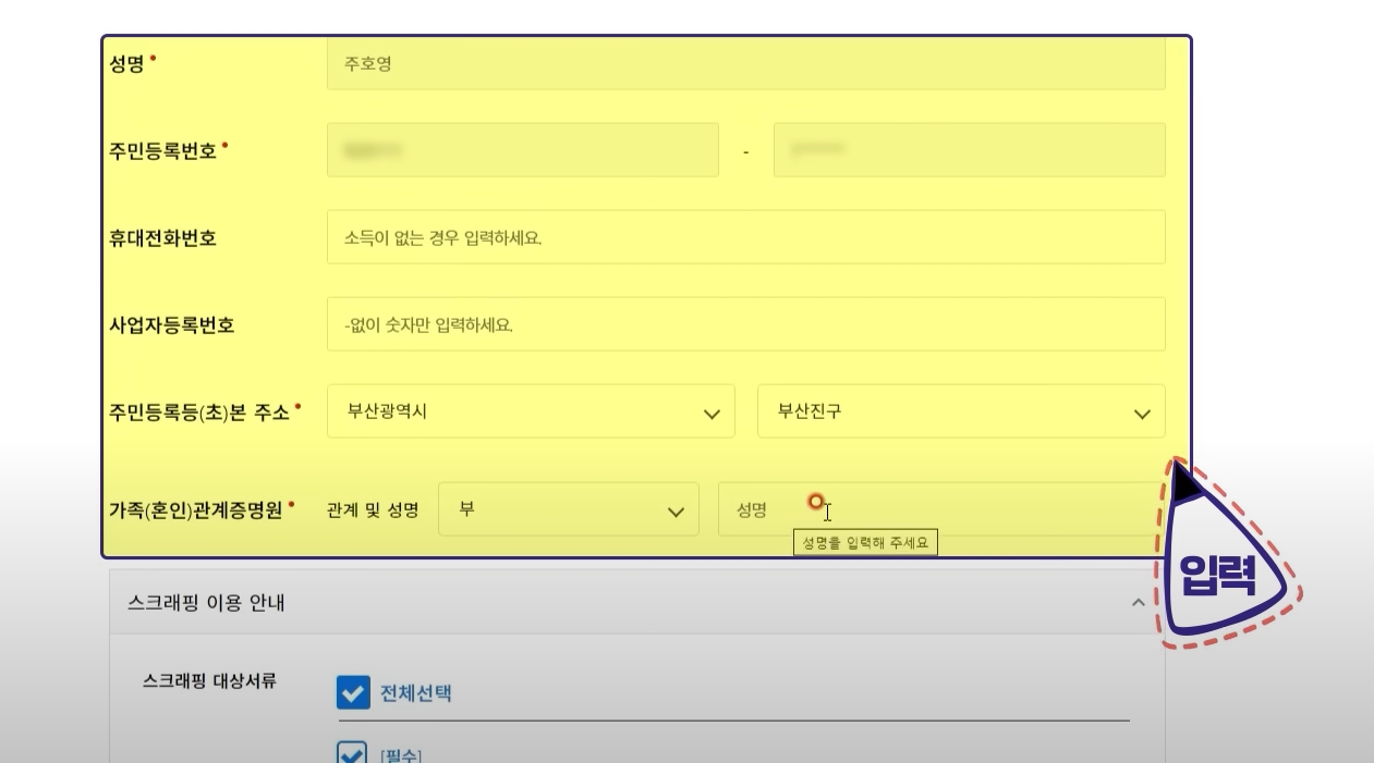 4. 정보제공 동의 및 신청 정보 입력