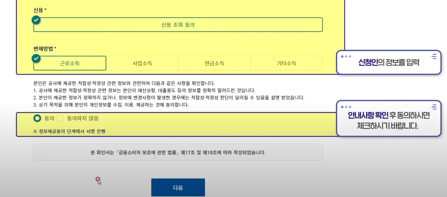 5. 대출 가능여부 확인 및 신청 정보 확인